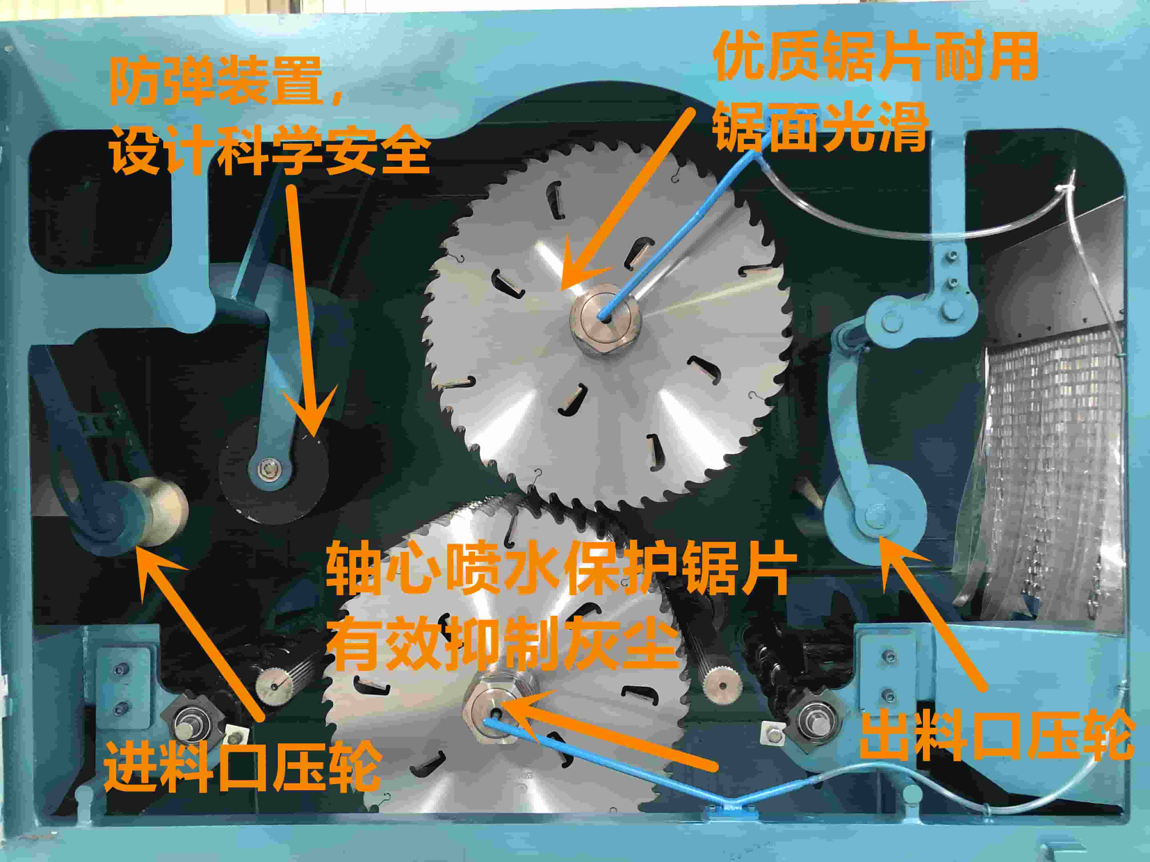 降温系统:采用轴芯喷水技术,防尘环保,保护锯片,能确保锯片持续工作,延长锯片寿命。